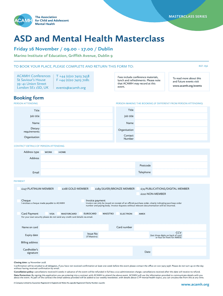 ASD and Mental Health MasterclassTickets from just74.00Friday 7 September / 09.00 17.00 / Dublin Venue TBC This full day training is the equivalent of 6 hours CPD, and is suitable for those who have