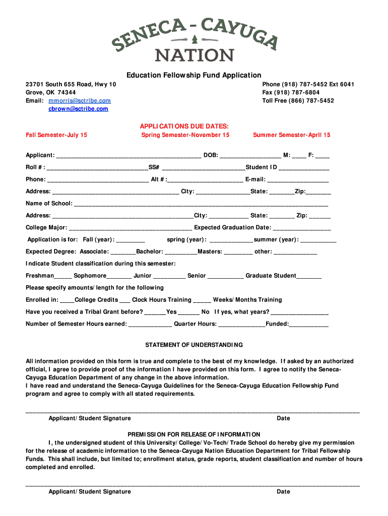 Education Fellowship Fund Application 23701 South 655 Road, Hwy 10 Grove, OK 74344 Email: Morris sctribe.com brown scribe. Compose (918) 7875452 Ext 6041 Fax (918) 7876804 Toll Free (866) 7875452APPLICATIONS