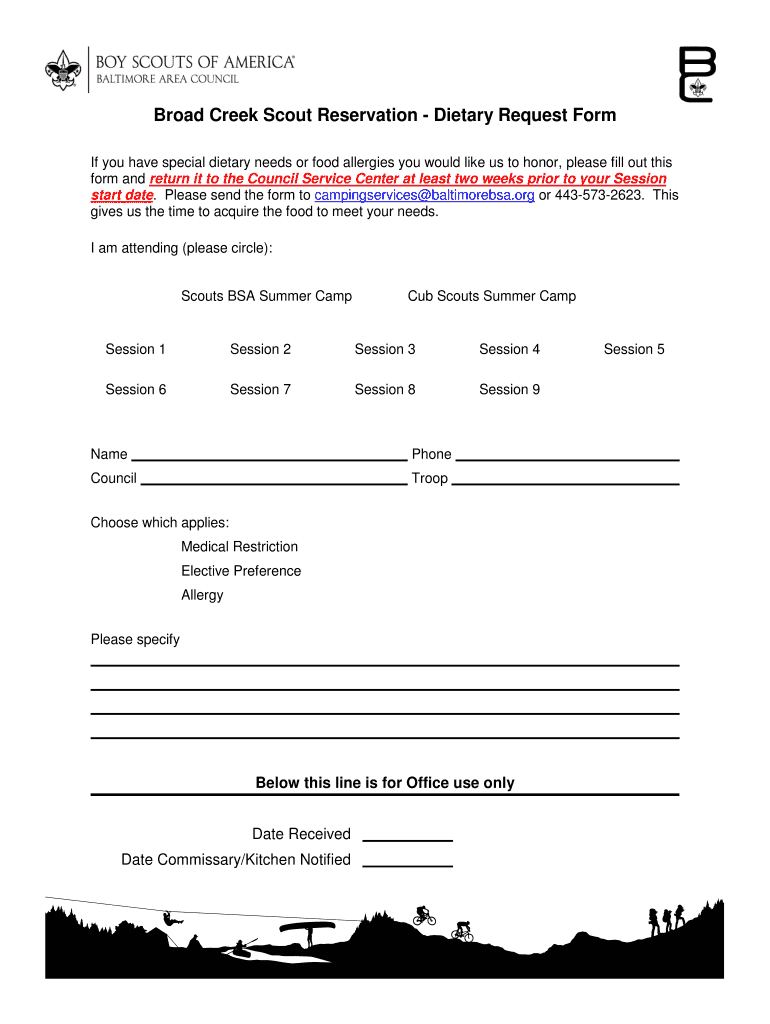 Get the free Broad Creek Scout Reservation - Dietary Request Form