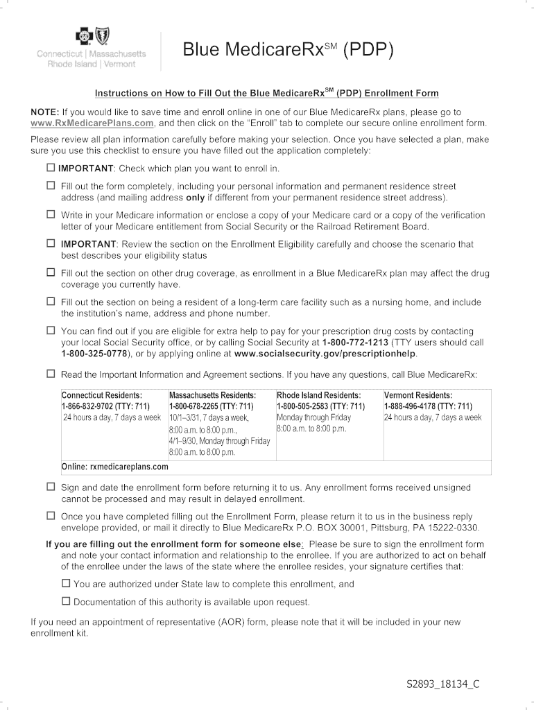 NOTE: If you would like to save time and enroll online in one of our Blue Medicare Rx plans, please go