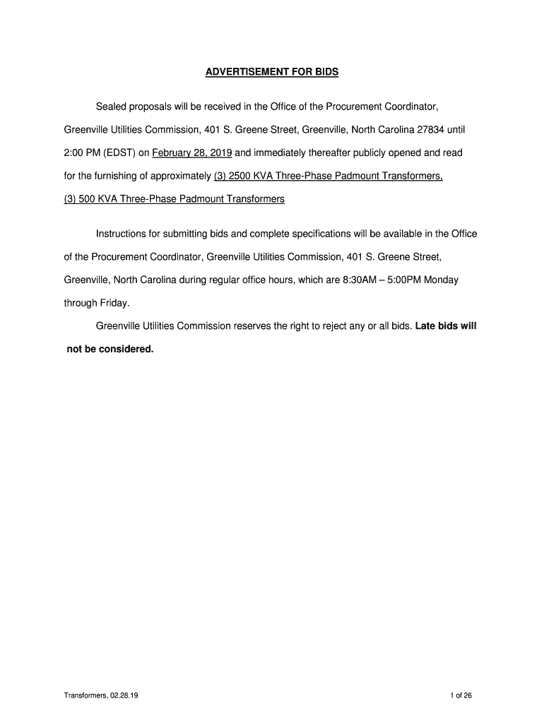 Greenville Utilities Commission, 401 S. Greene Street, Greenville, North Carolina 27834 until