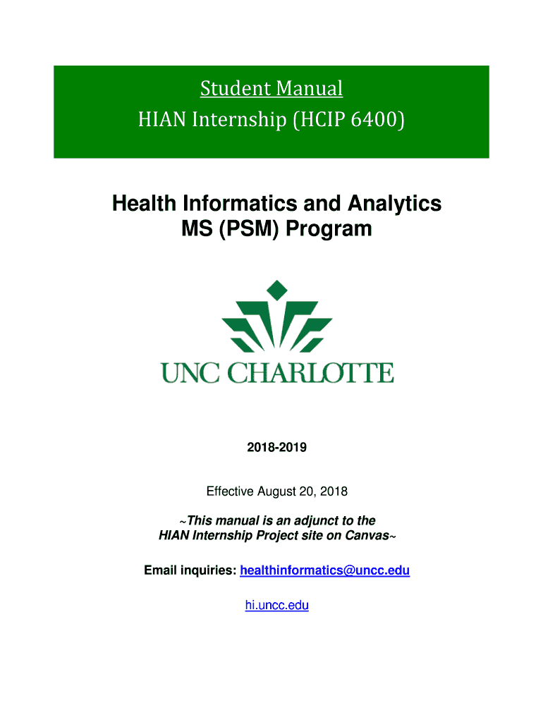 Student Manual HAN Internship (HIP 6400)Health Informatics and Analytics MS (PSM) Program20182019Effective August 20, 2018, This manual is an adjunct to the HAN Internship Project site on Canvas Email