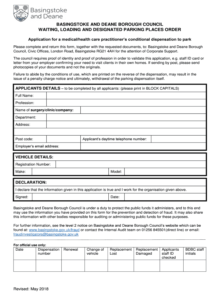 Get the free Medical Dispensation form - Basingstoke and Deane Borough ...