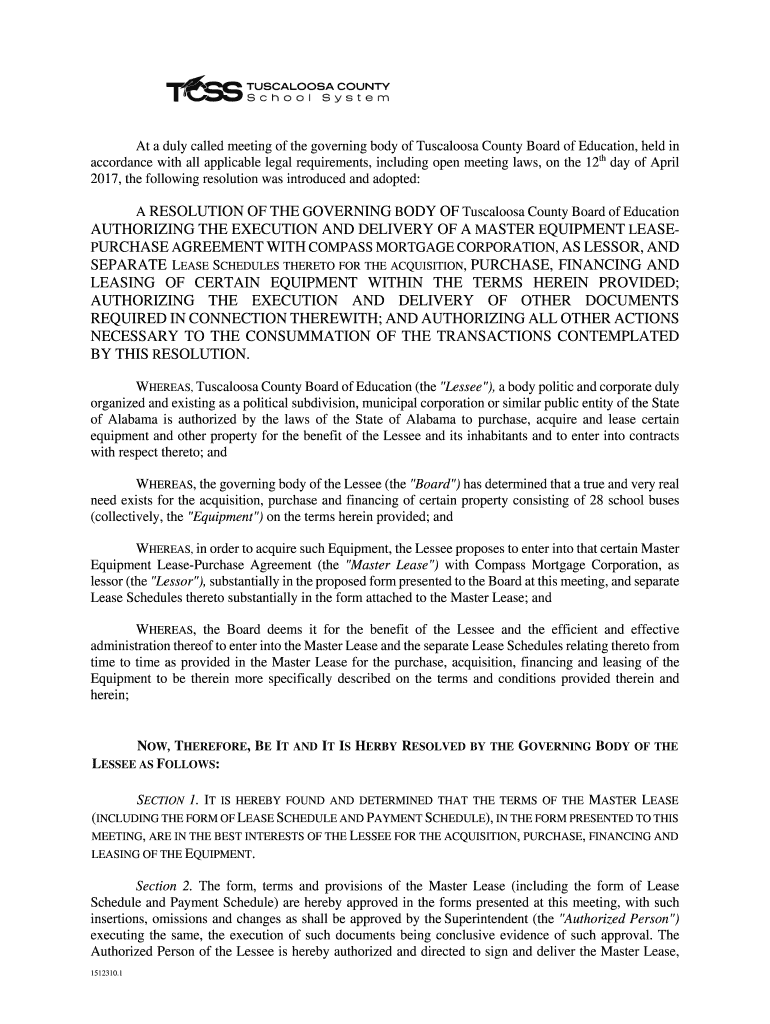 Get the free authorizing the execution and delivery of a master equipment ...