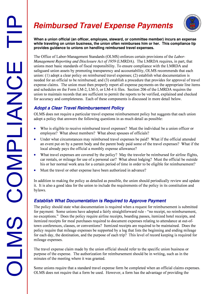 When a union official (an officer, employee, steward, or committee member) incurs an expense