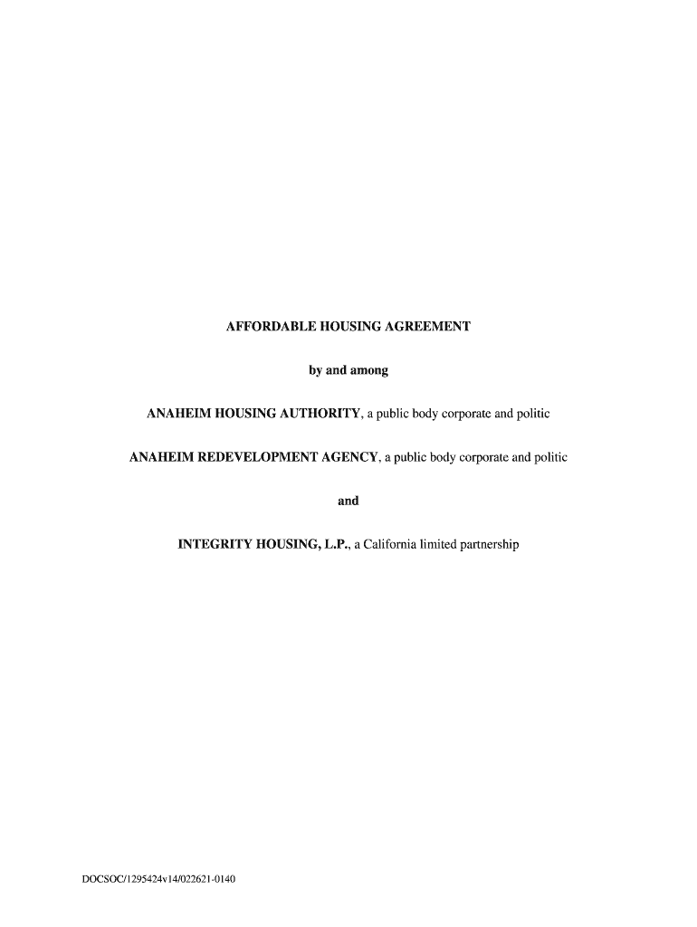 ANAHEIM HOUSING AUTHORITY, a public body corporate and politic