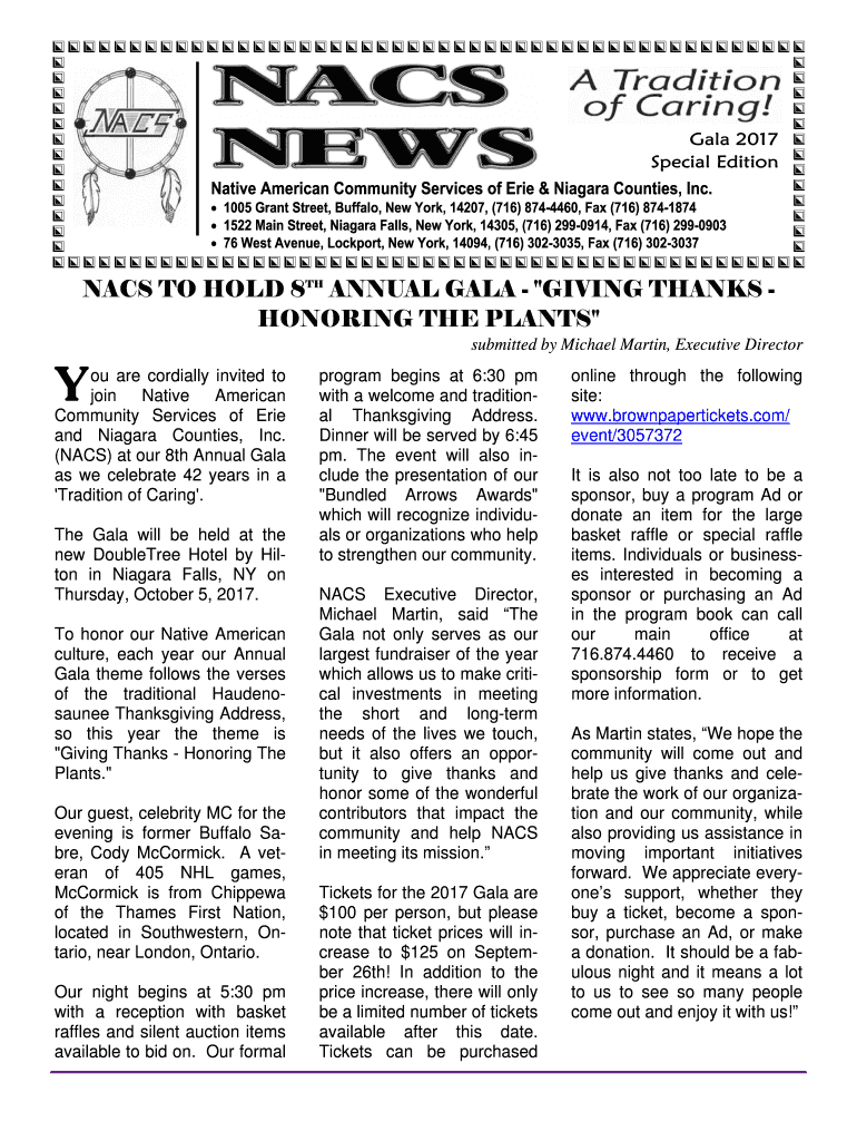 ACS TO HOLD 8TH ANNUAL GALA “GIVING THANKS HONORING THE PLANTS submitted by Michael Martin, Executive Directory are cordially invited to join Native American Community Services of Erie and Niagara
