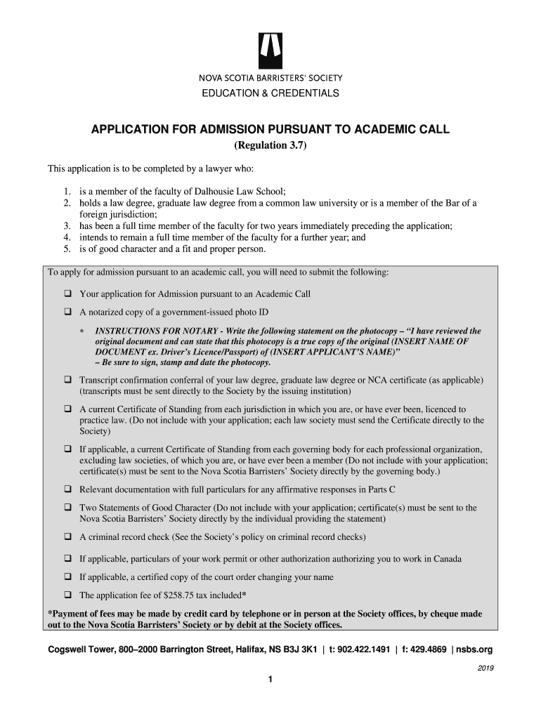 EDUCATION & CREDENTIALSAPPLICATION FOR ADMISSION PURSUANT TO ACADEMIC CALL (Regulation 3.7) This application is to be completed by a lawyer who: 1. Is a member of the faculty of Jalousie Law School;