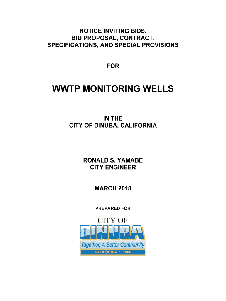 NOTICE INVITING BIDS, BID PROPOSAL, CONTRACT, SPECIFICATIONS, AND SPECIAL PROVISIONS FORMAT MONITORING WELLS IN THE CITY OF DANUBE, CALIFORNIARONALD S. DAMAGE CITY ENGINEER MARCH 2018 PREPARED PORTABLE