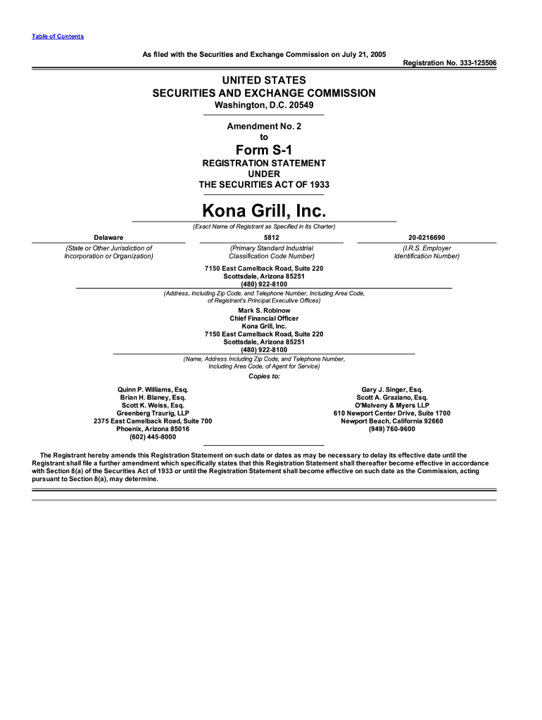 Table of Contents As filed with the Securities and Exchange Commission on July 21, 2005,