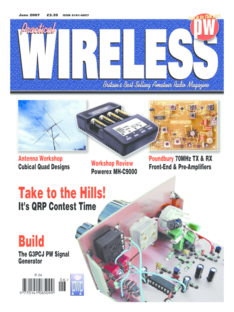 June 2073.35ISSN 01410857Antenna Workshop Cubical Quad DesignsWorkshop Review Powered MHC9000Take to the Hills! It's ARP Contest TimeBuildThe G3PCJ PW Signal Generator R 24pwpPoundbury 70MHz TX &