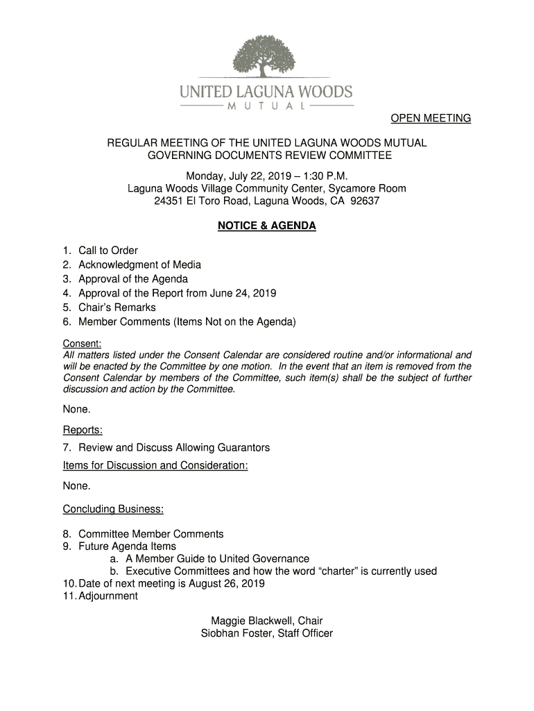 Get the free United Governing Documents Review Agenda 7-22-2019 Final