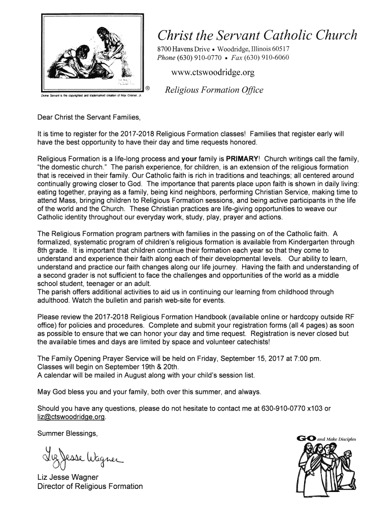 It is time to register for the 20172018 Religious Formation classes! Families that register early will