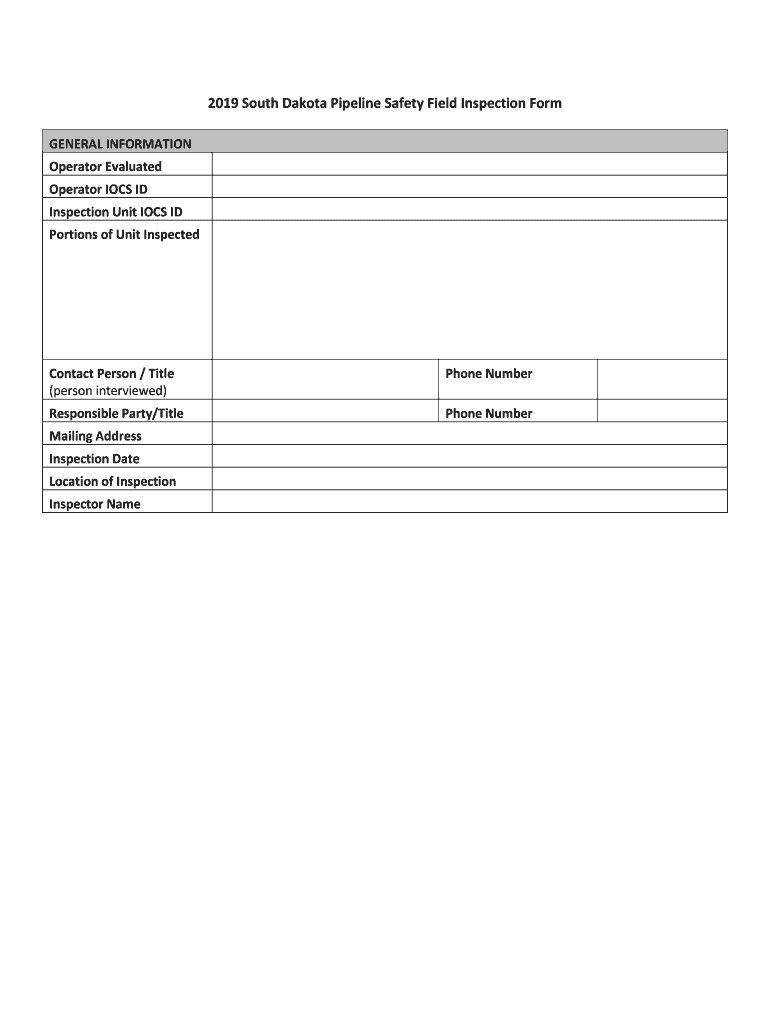 Get the free Pipeline Safety Inspection Form - South Dakota Public Utilities ... - puc sd