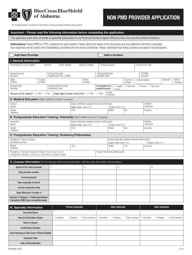 Get the free Non PMD Provider Application - provider.bcbsal.org - Blue ... - providers bcbsal