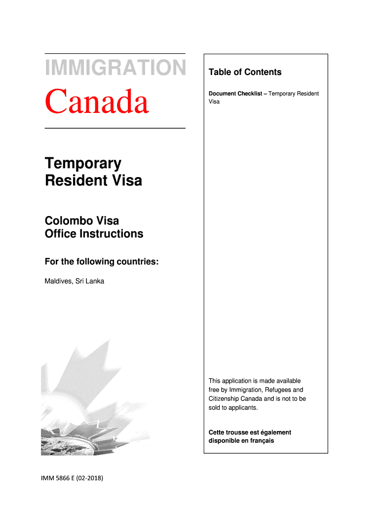 IMMIGRATIONCanadaTable of Contents Document Checklist Temporary Resident VisaTemporary Resident Visa Colombo Visa Office Instructions For the following countries: Maldives, Sri Lanais application