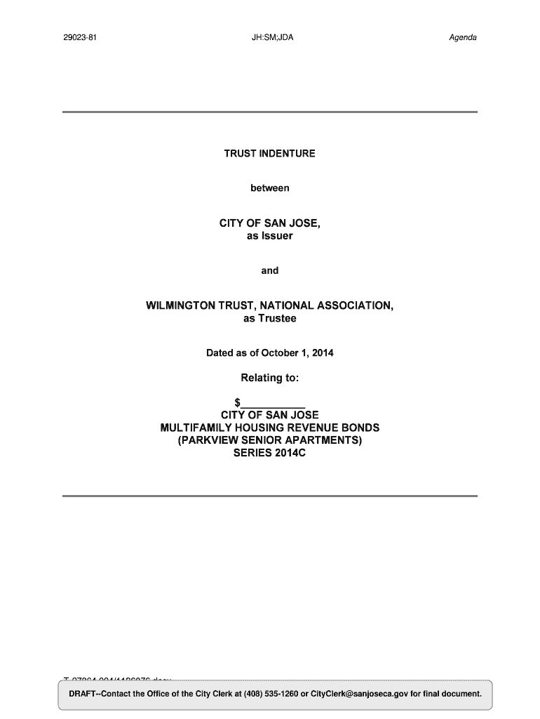 2902381JH:SM;JDAAgendaTRUST INDENTURE betweenCITY OF SAN JOSE, as Issuer Wilmington TRUST, NATIONAL ASSOCIATION, as Trustee Dated as of October 1, 2014Relating to: $ CITY OF SAN JOSE MULTIFAMILY HOUSING