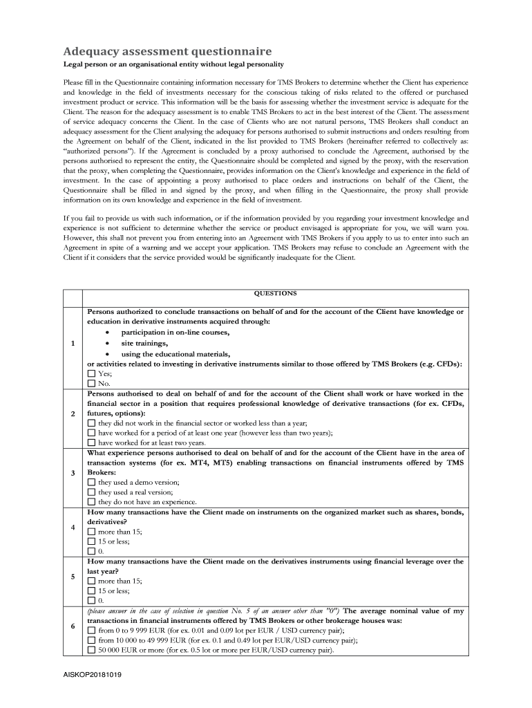 Please fill in the Questionnaire containing information necessary for TMS Brokers to determine