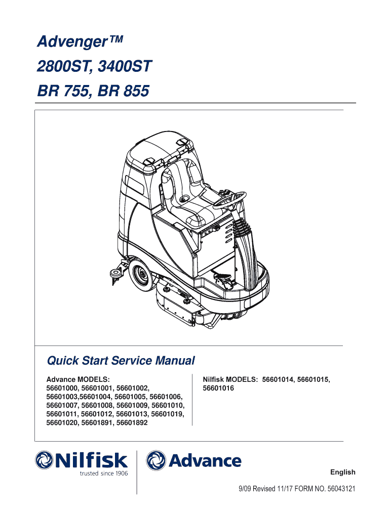 Get the free Nilfisk-Advance Advenger 2800ST Quick Start Service Manual