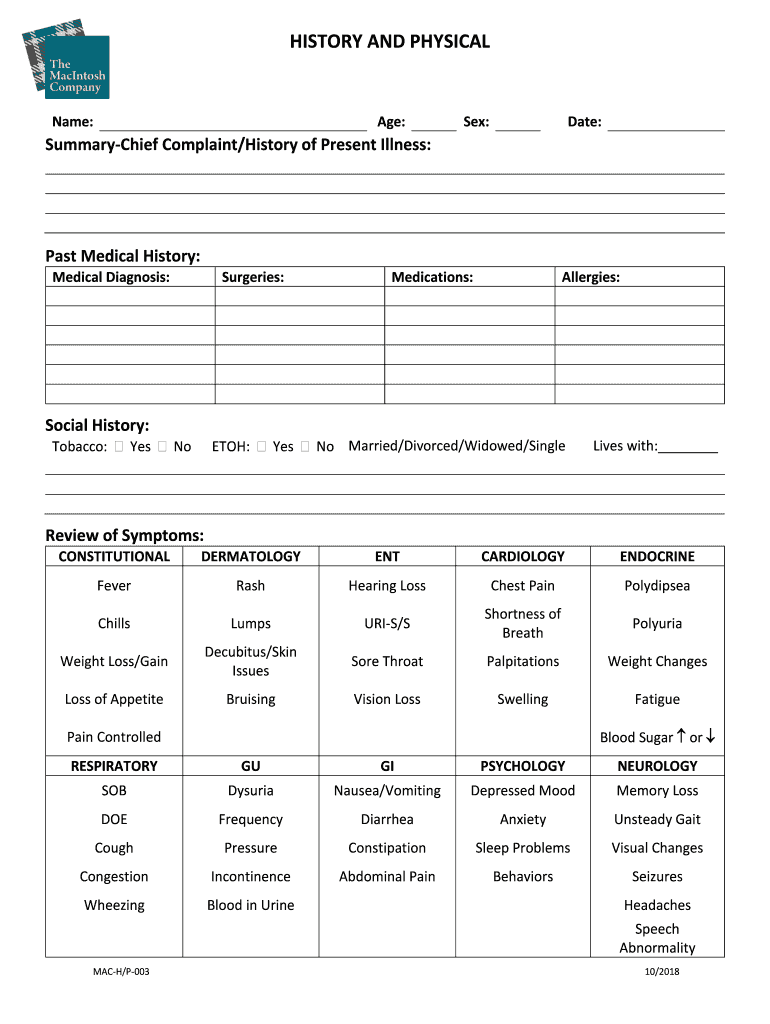 Get the free Patient History Form Chief Complaint/History of Present Illness ...