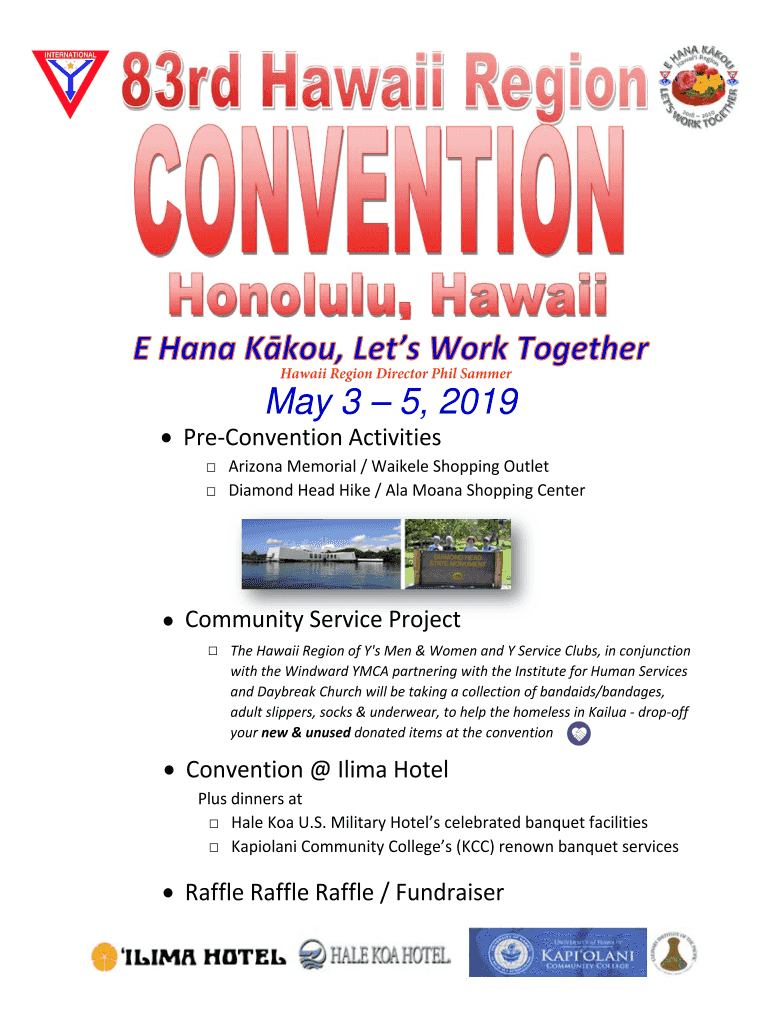 Hawaii Region Director Phil Zimmerman 3 5, 2019 Preconception Activities Arizona Memorial / Wankel Shopping Outlet Diamond Head Hike / Ala Mona Shopping Center Community Service Projects The Hawaii