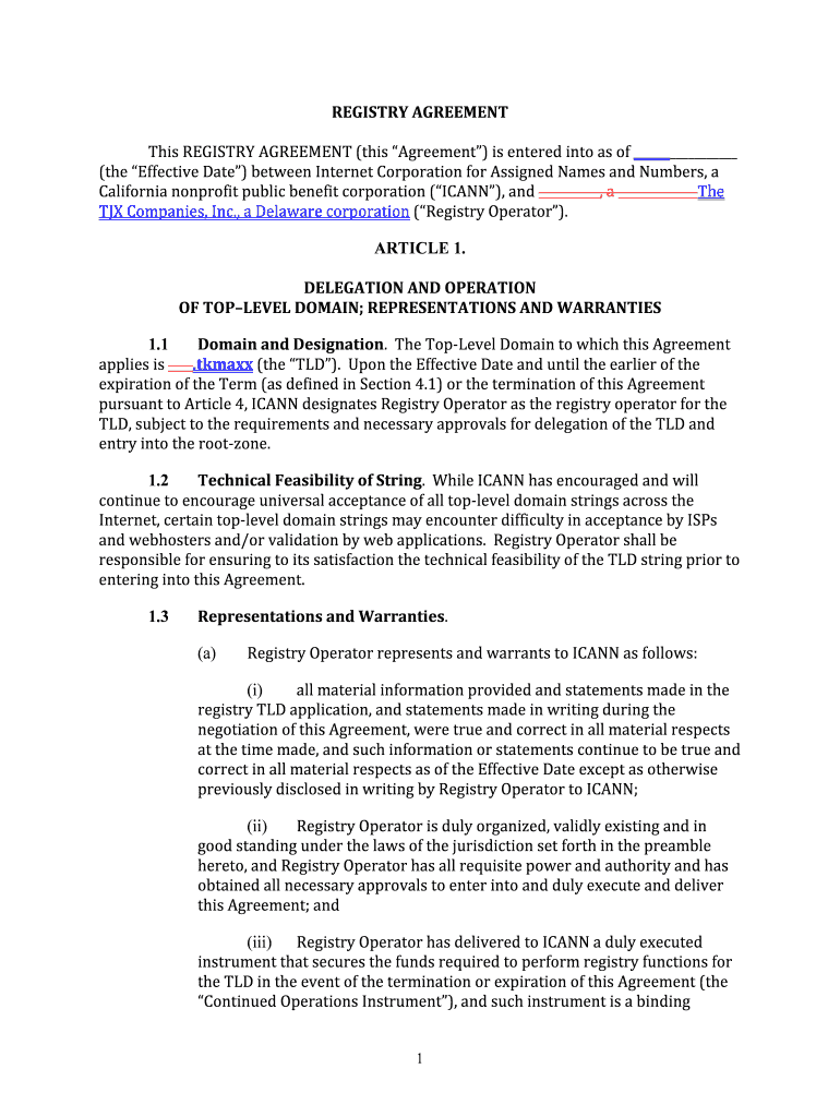 REGISTRYAGREEMENT ThisREGISTRYAGREEMENT(disagreement)isenteredintoasof (theEffectiveDate)betweenInternetCorporationforAssignedNamesandNumbers, a Californianonprofitpublicbenefitcorporation(ICANN),