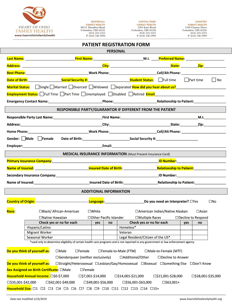 Get the free PATIENT REGISTRATION FORM No - Heart of Ohio Family Health