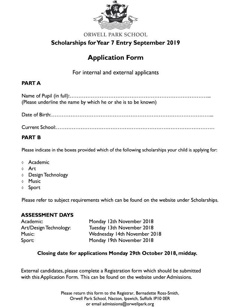 Scholarships for Year 7 Entry September 2019Application Form