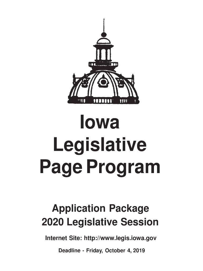 Iowa Legislative Page Program Application Package 2020 Legislative Session Internet Site: http://www.legis.iowa.gov Deadline Friday, October 4, 2019GENERAL Each year the Iowa Senate and the Iowa House