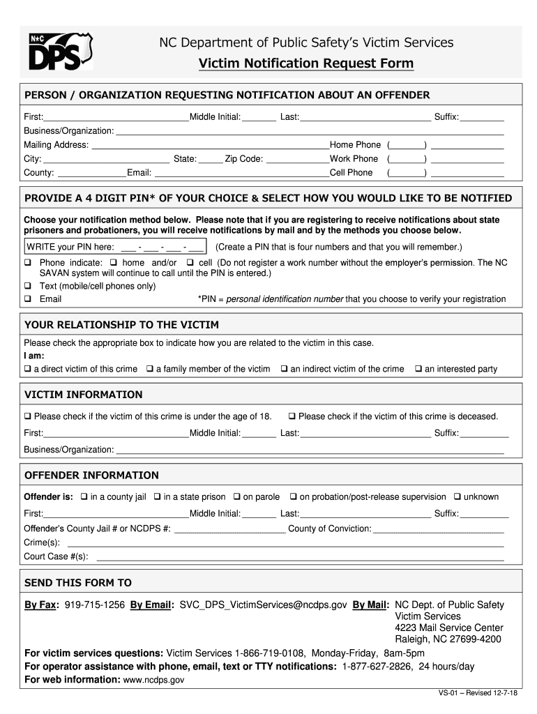 Get the free NC Department of Public Safety's Victim Services Victim Notification ...
