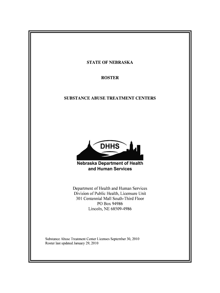 STATE OF NEBRASKAROSTERSUBSTANCE ABUSE TREATMENT CENTERSDepartment of Health and Human Services