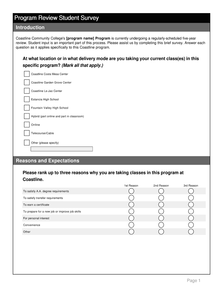 Get the free Program Review Student Survey - Coastline Community College