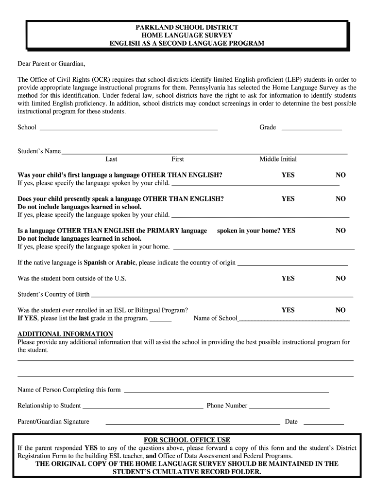 HOME LANGUAGE SURVEY
