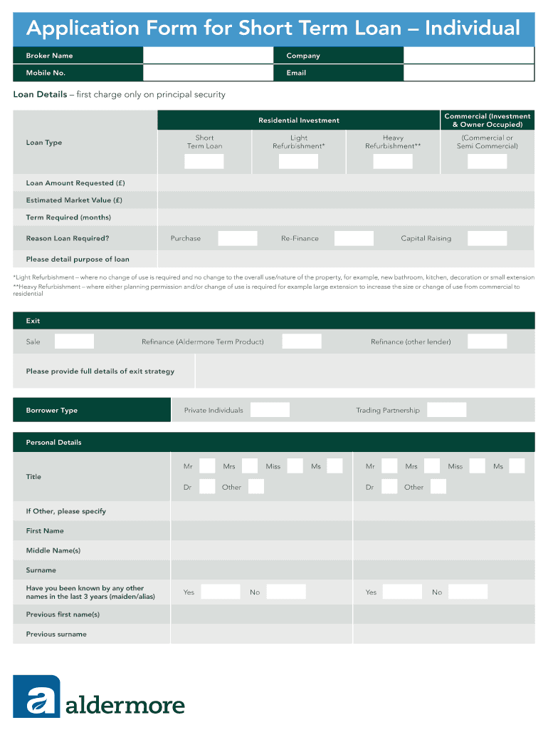 Application Form for Short Term Loan Individual Broker Name Company Mobile No. Email Loan Details first charge only on principal security Commercial (Investment & Owner Occupied) Residential Investment