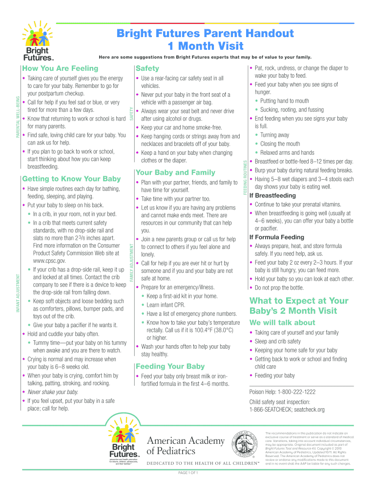 Get the free Bright Futures Parent Handout 1 Month Visit - Northwest Pediatric ...