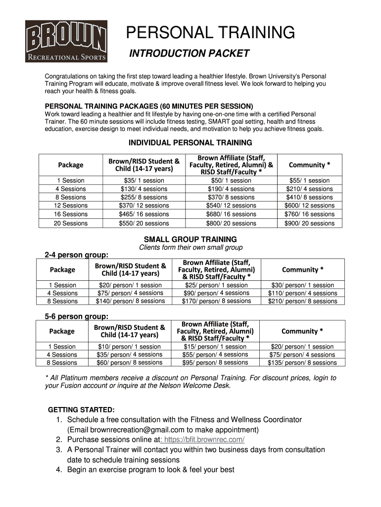 Get the free PERSONAL TRAINING Introduction Packet - Brown University ...