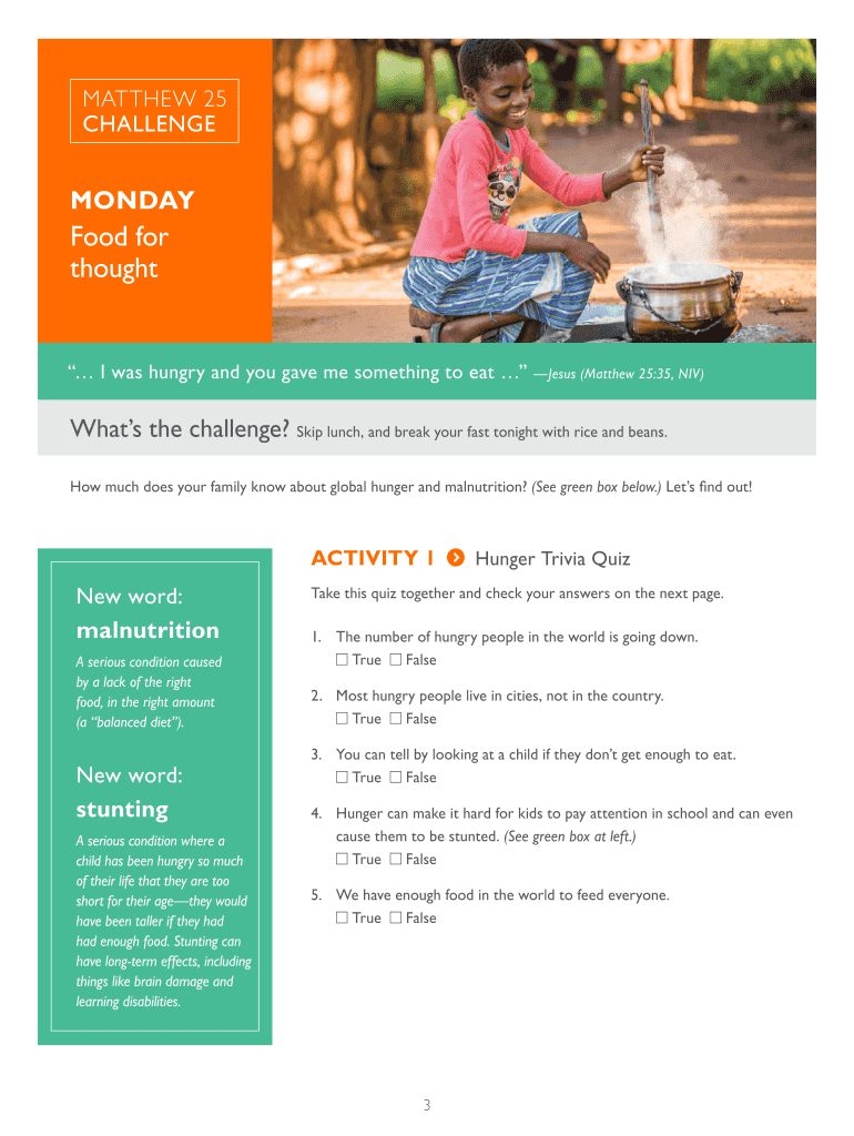 SUITABLE OF CONTENTSMATTHEW 25CHALLENGEMonday.............................................................................................................. Page 3