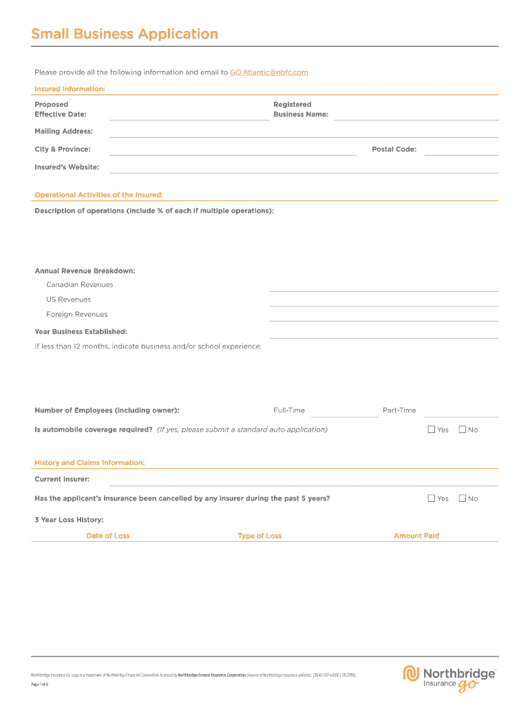 Small Business Application Please provide all the following information and email to GO. Atlantic nbfc.com Insured Information: Proposed Effective Date:Registered Business Name:Mailing Address: City
