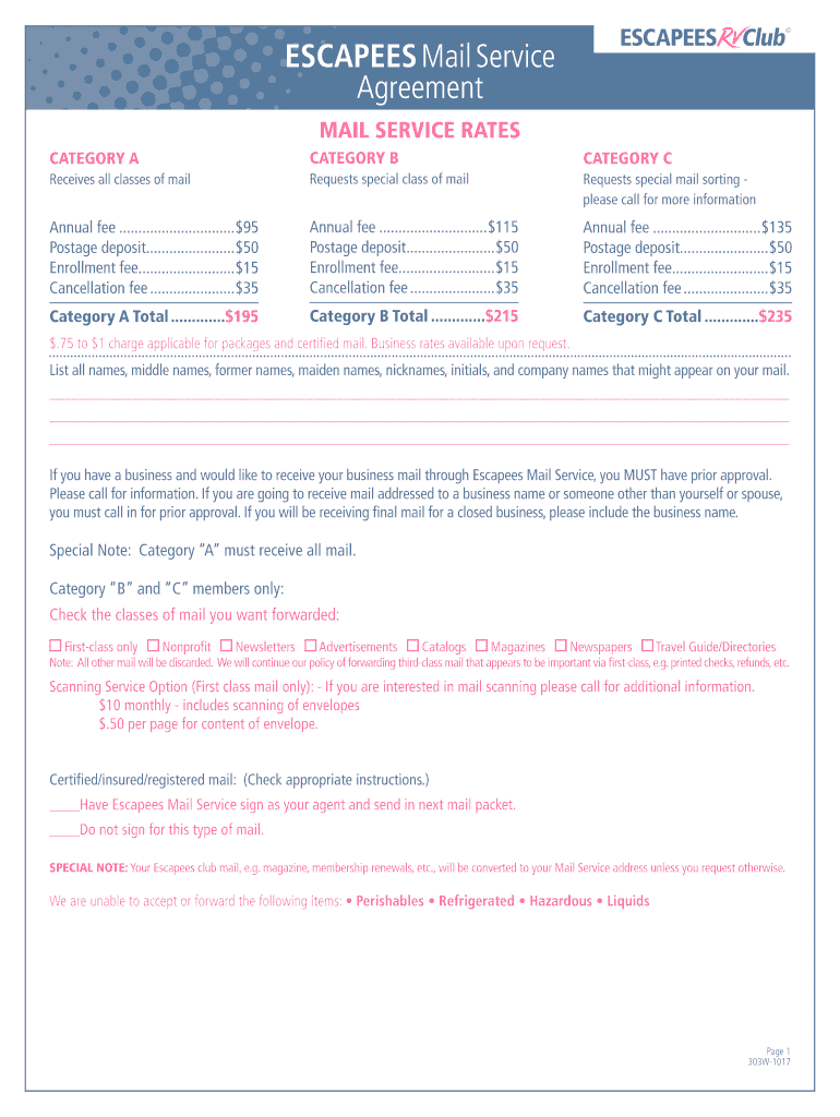 Anyone who wishes to have their mail forwarded by the Escapees RV Club must file for their mail service.
