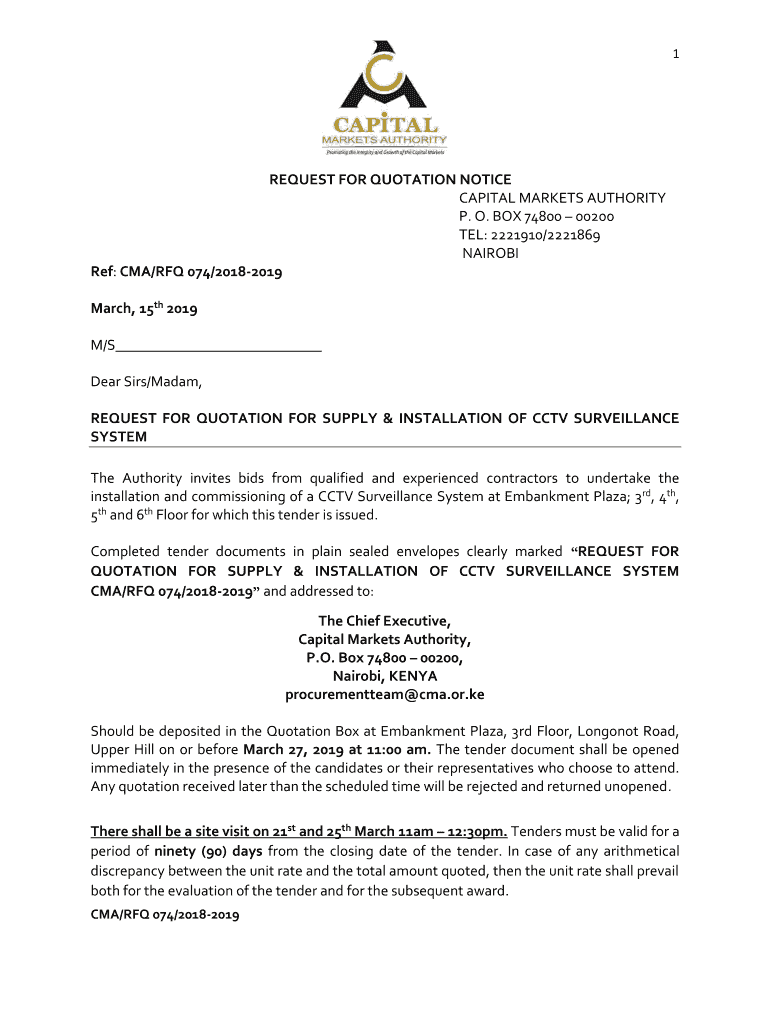 Get the free 1 request for quotation notice capital markets authority po box ...