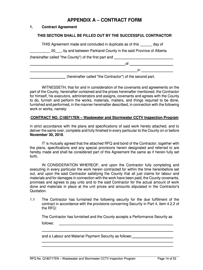 Request for Quotations For Wastewater and Stormwater CCTV Inspection ProgramRequest for Quotation No.: Q180717EN Issued: August 23, 2018, Submission Deadline: September 12, 2018, at 14:00:00 hrs local