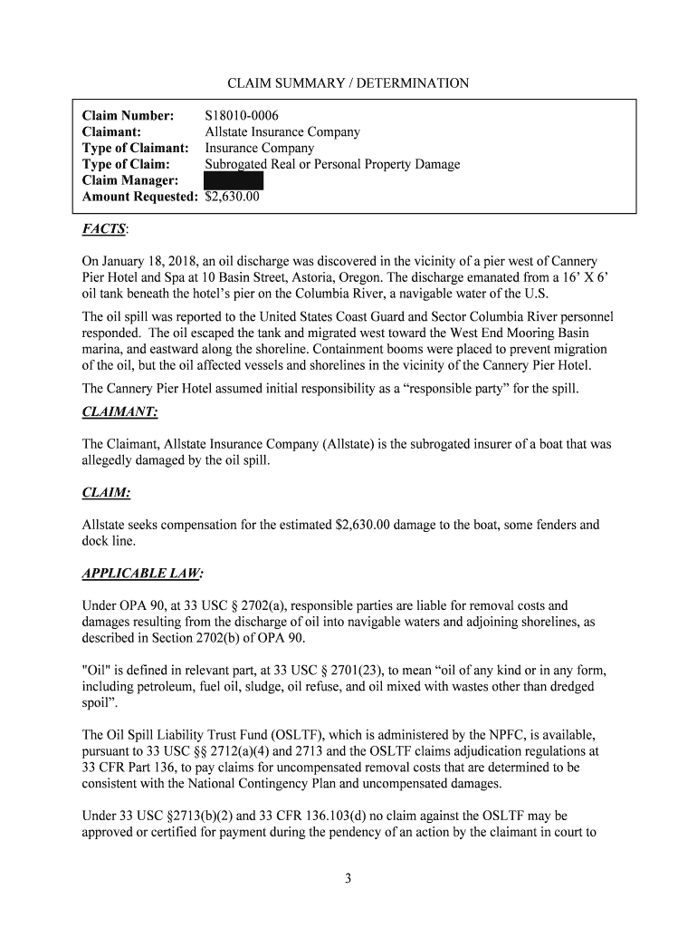 CLAIM SUMMARY / DETERMINATION