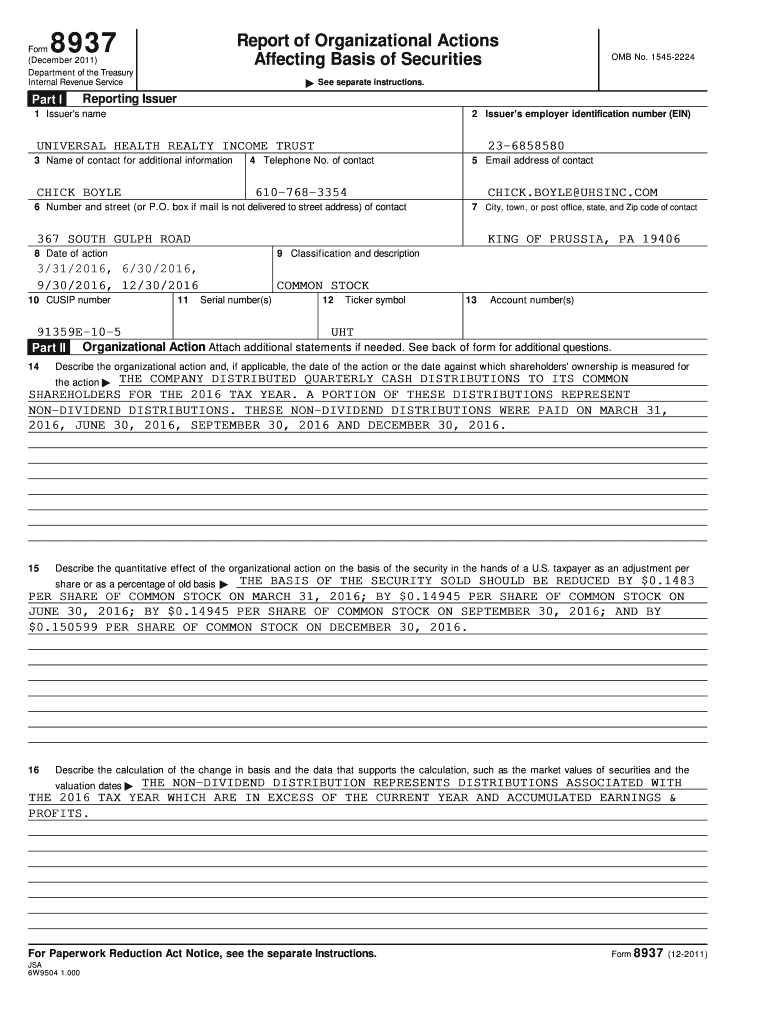 I8937Report of Organizational Actions