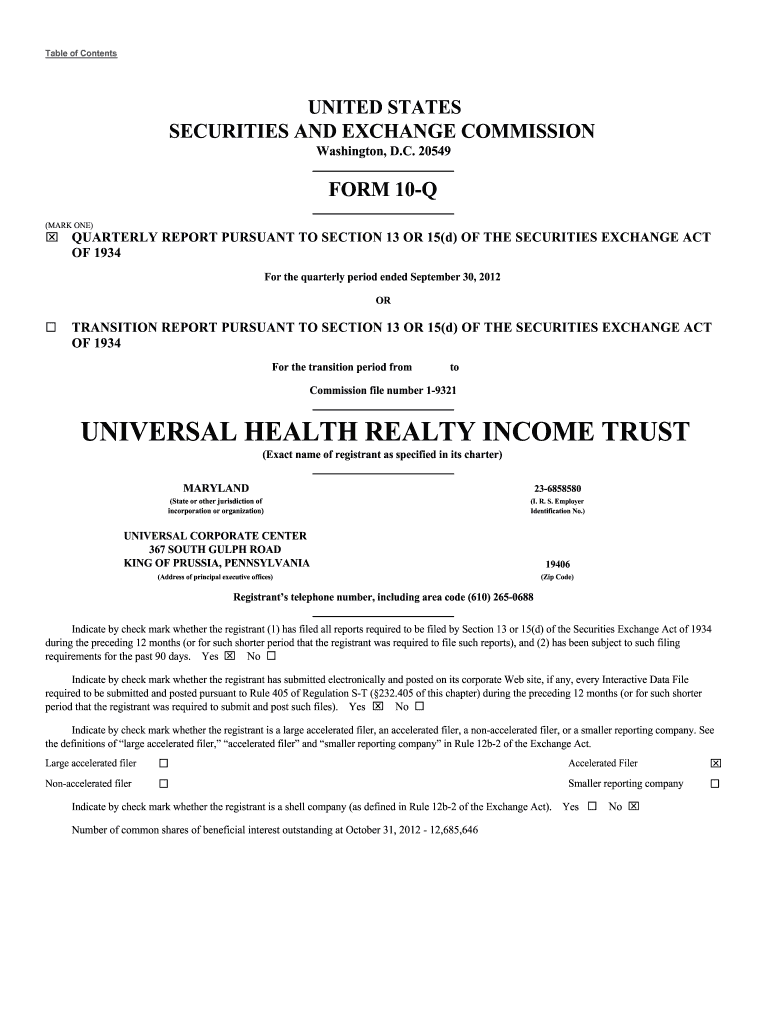 Get the free Number of common shares of beneficial interest outstanding at October 31, 2012 - 12,...