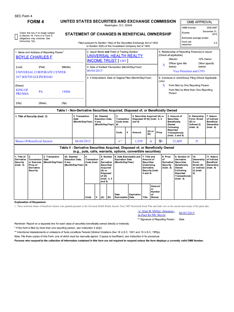 Get the free These restricted shares of beneficial interest were granted pursuant to the Universa...