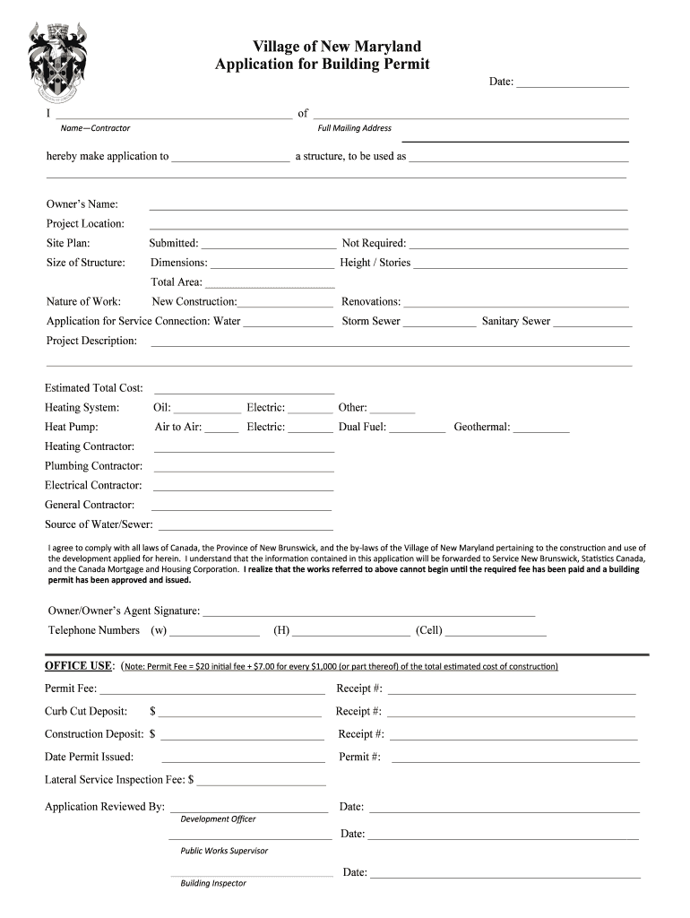 Get the free Village of New Maryland Application for Building Permit