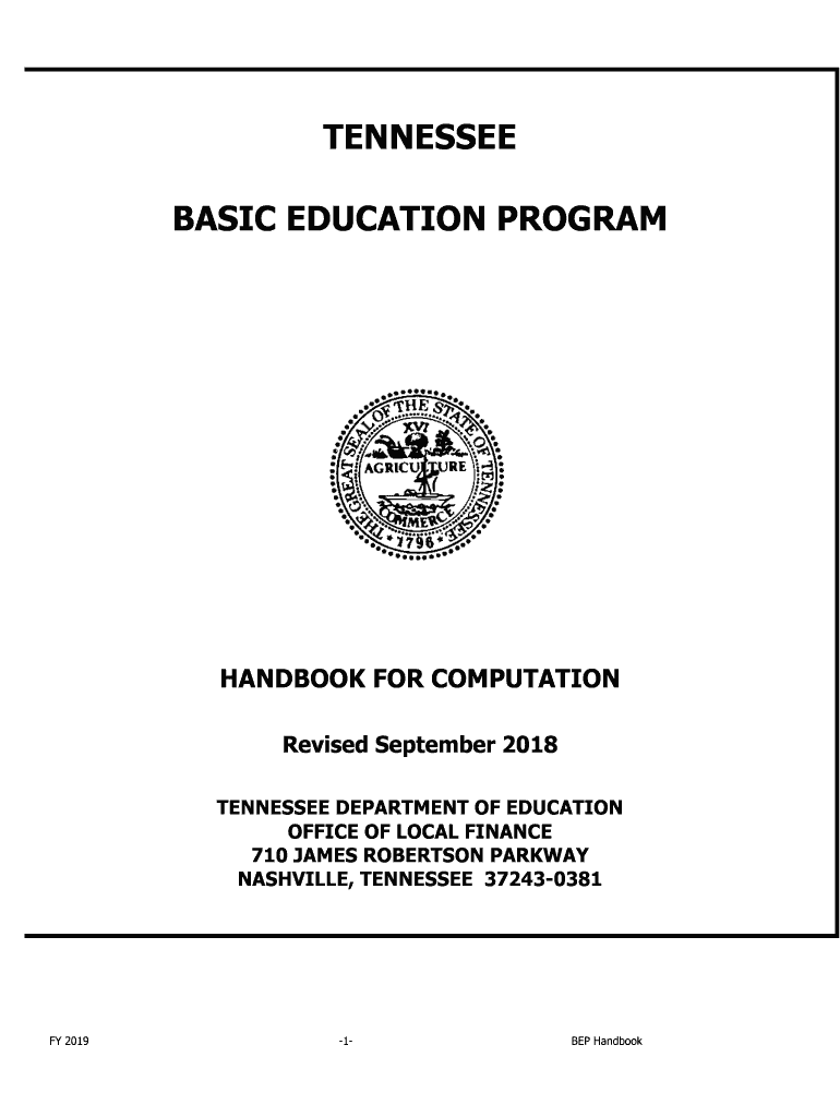 TENNESSEE BASIC EDUCATION PROGRAMHANDBOOK FOR COMPUTATION Revised September 2018 TENNESSEE DEPARTMENT OF EDUCATION OFFICE OF LOCAL FINANCE 710 JAMES ROBERTSON PARKWAY NASHVILLE, TENNESSEE 372430381FY