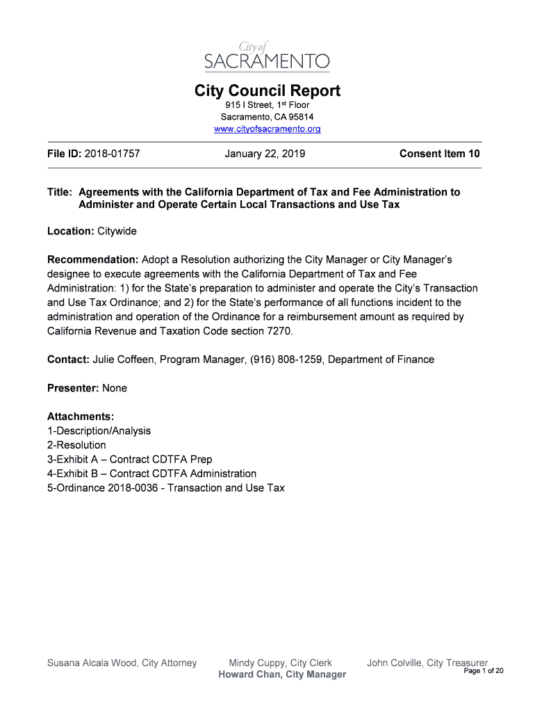 www.cityofsacramento.orgFile ID: 201801757January 22, 2019Consent Item 10Title: Agreements with the California Department of Tax and