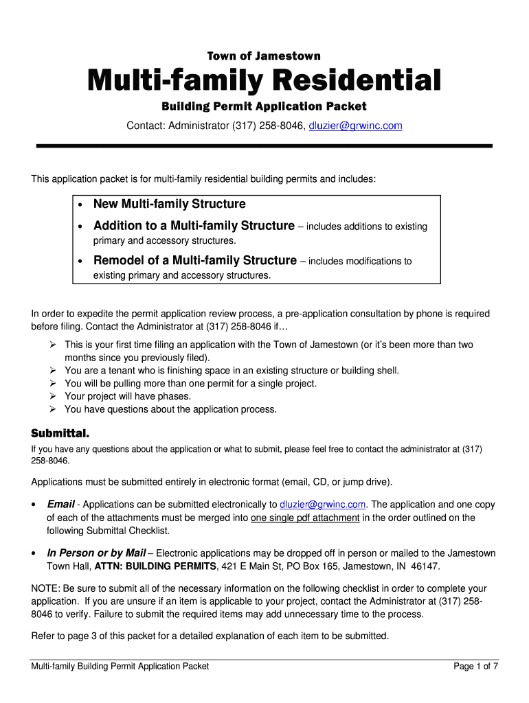 Town of JamestownMultifamily Residential Building Permit Application Packet Contact: Administrator (317) 2588046, glazier growing. This application packet is for multifamily residential building permits