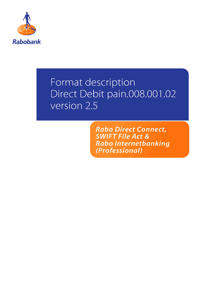 Format description Direct Debit pain.008.001.02 version 2.5 Rambo Direct Connect, SWIFT File Act & Rambo Internet banking (Professional)Content 12DIRECT DEBIT IMPORT FORMAT .............................................................................................